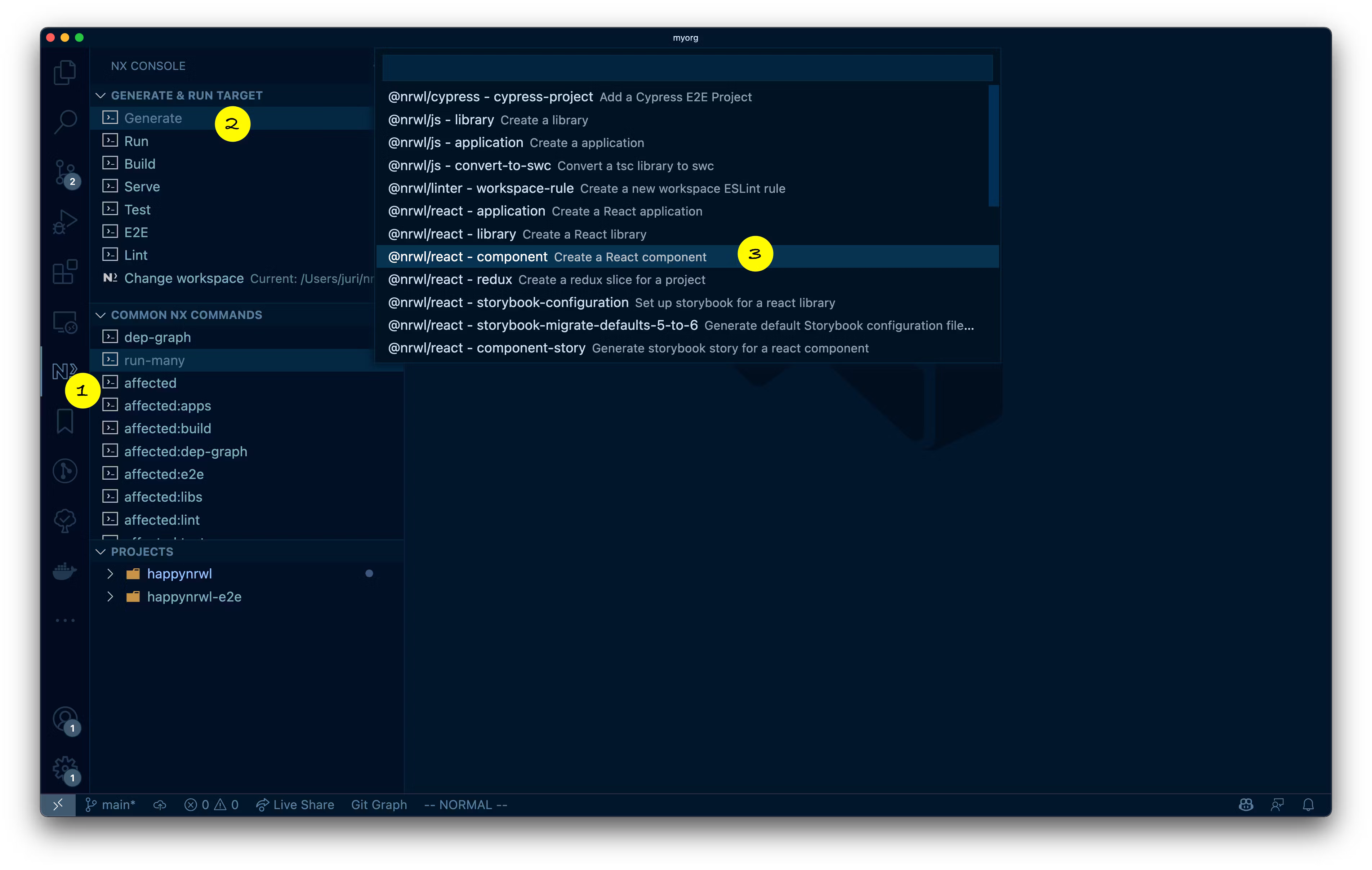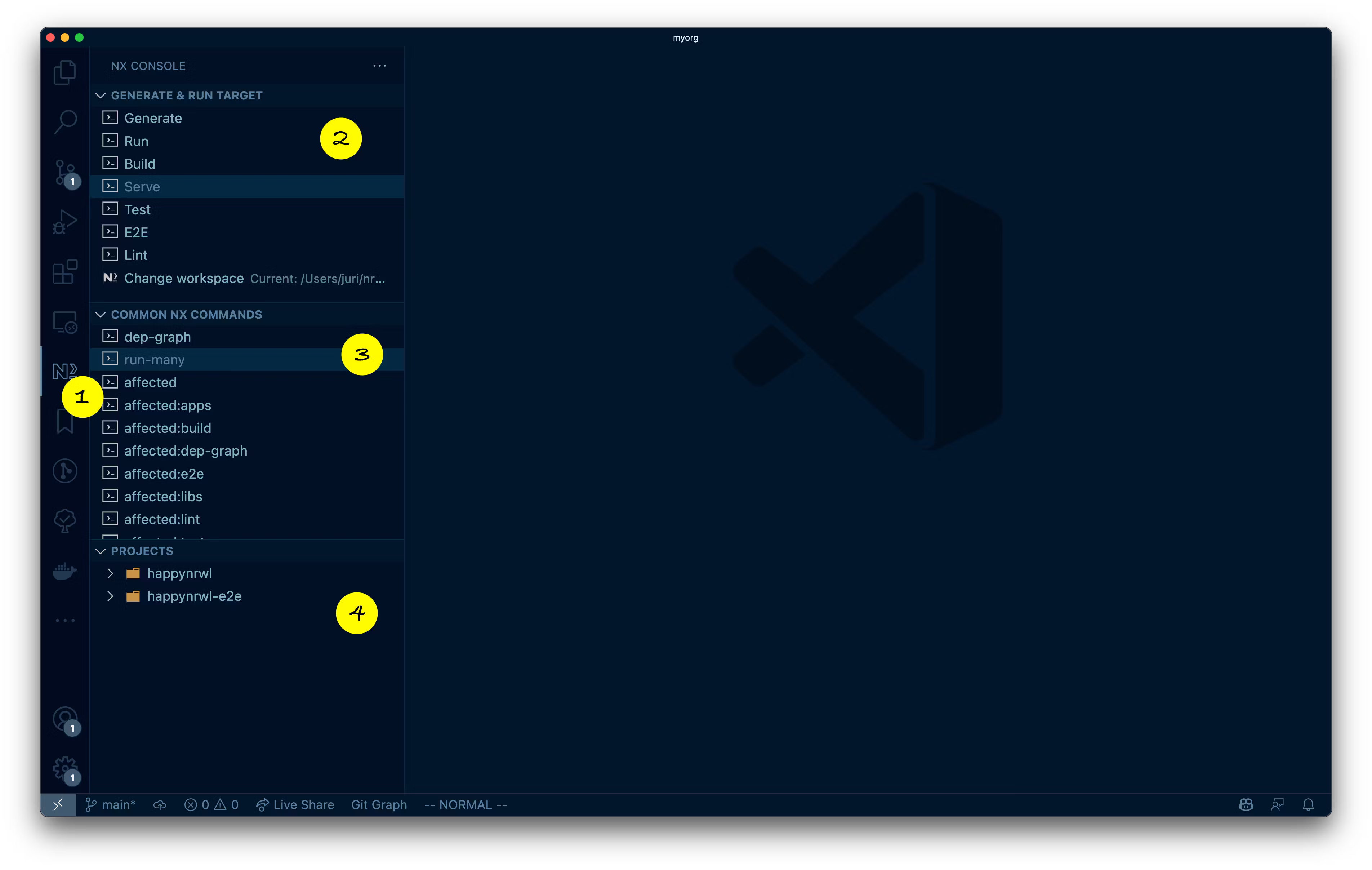 Layout of a Nx workspace in VSCode